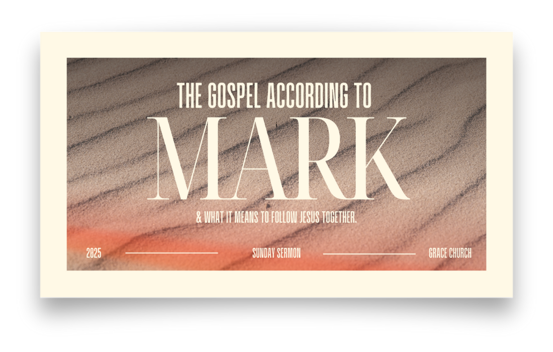 Join us each Sunday as we walk through the Gospel of Mark and learn what it means to follow Jesus in everyday life. This series invites us to slow down, listen closely, and be formed by who Jesus is and what He teaches us. Come ready to grow, be encouraged, and take your next step in discipleship alongside our church family.
